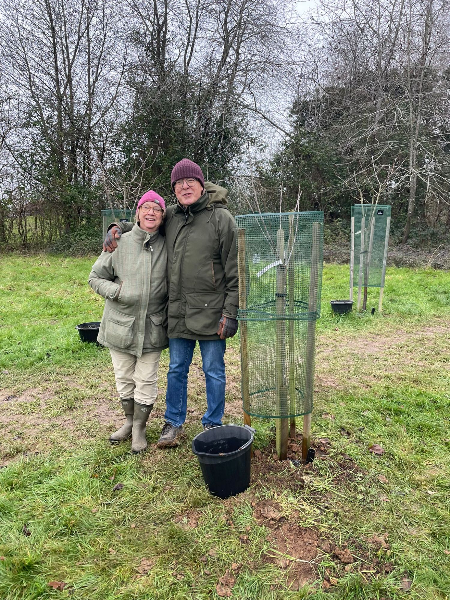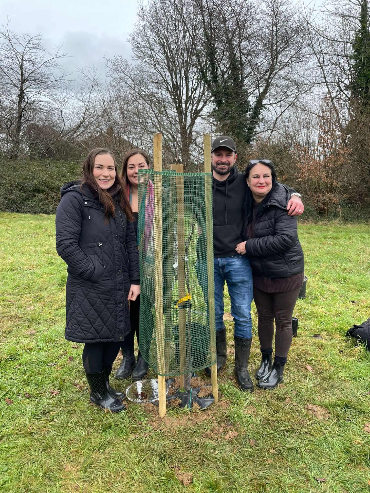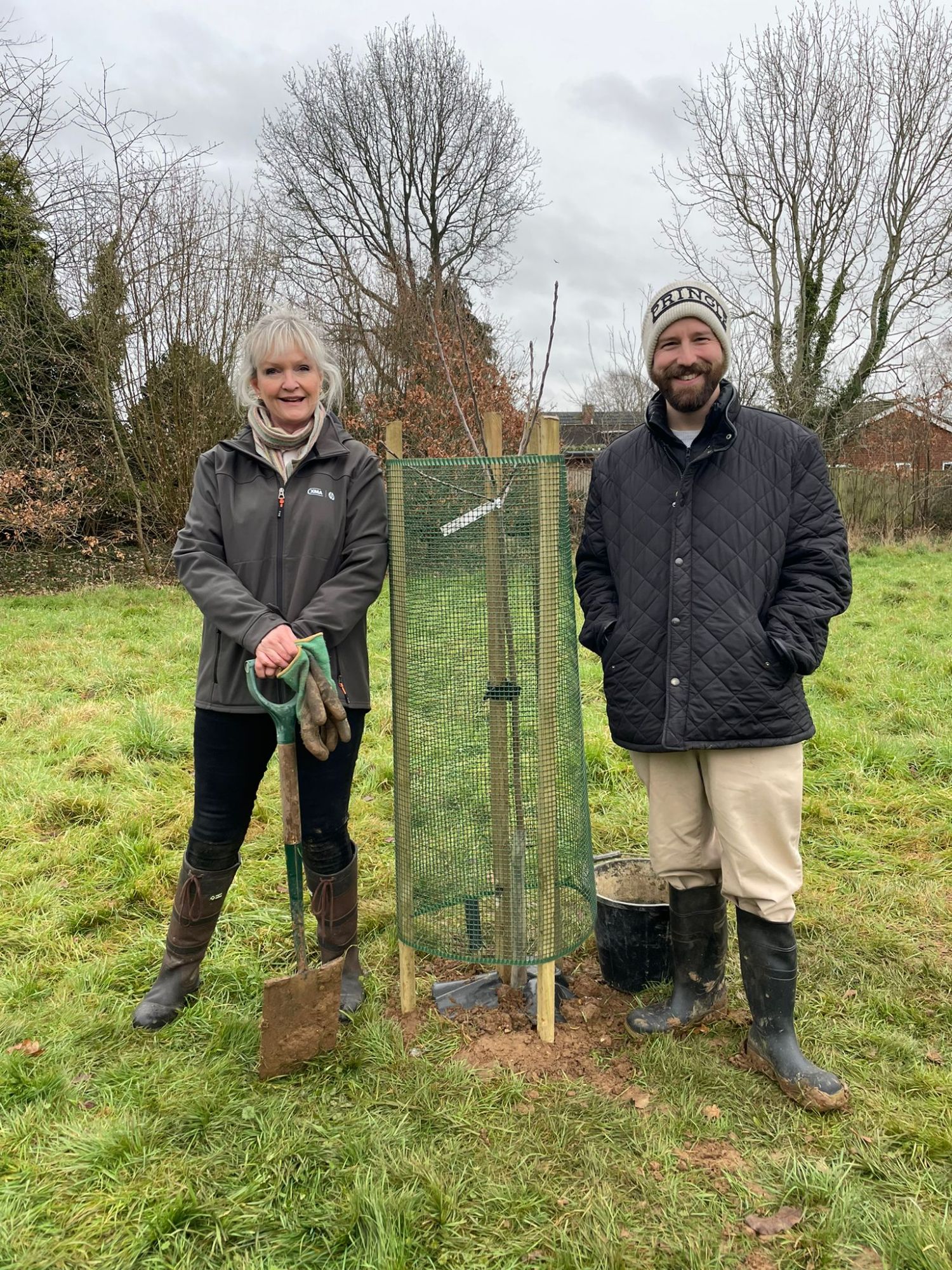 A hardy group braved the cold to plant 3 new apple trees and also to replace a cherry tree that did not survive the long hot summer
